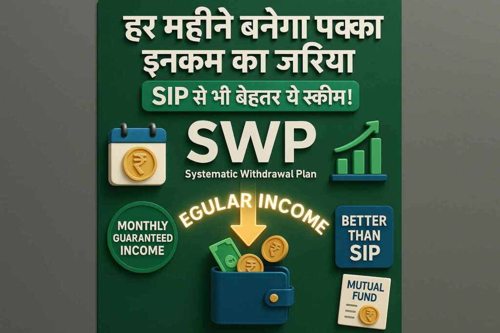 हर महीने बनेगा पक्का इनकम का जरिया – SIP से भी बेहतर ये स्कीम! SWP Explained in Hindi : आज के समय में हर कोई चाहता है कि उसके पास Fixed Monthly Income Source (पक्की मासिक आय का जरिया) हो। यह ज़रूरत खासकर रिटायरमेंट के बाद और उन लोगों के लिए ज़्यादा होती है, जिन्हें हर महीने Regular Income (नियमित कमाई) चाहिए।